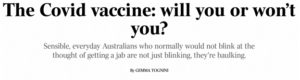 Nor did it stop The Australian running a discussion on the whether or not to get the Covid-19 vaccine – a highly charged, sensitive topic given the proportion of people who express doubt.