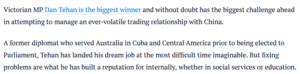 “Almost every element of the nation’s recovery will affected by its relationship with China. Morrison knows this and that’s why he’s given Mr Fix-It Tehan the role.”