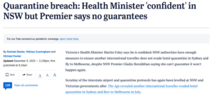 Despite this being the second potential devastating failure of Sydney’s hotel quarantine system, the blame was placed squarely on the individuals – not the government, as we have seen elsewhere.
