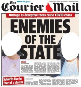 This part of the story was swiftly moved off the front page – a luxury not afforded to two teenage girls who tested positive for Covid in Brisbane after a trip to Melbourne.