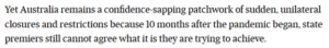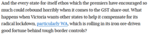 Further criticism of border closures again allowed the Feds off the hook for having any responsibility for quarantine, even though it is a commonwealth responsibility ( Hospital Pass: how Scott Morrison foisted quarantine responsibility on the states - Michael West), lumping it all back on state premiers: