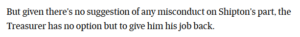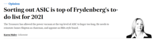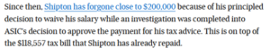 Soft treatment seemed to be the name of the game or egg beaters hard at work when Karen Maley and the Financial Review stepped in to defend ASIC chair James Shipton, who had stood aside from his role at the corporate regulator after it was revealed taxpayers had coughed up more than $118,000 to pay KPMG for Shipton’s tax advice. ASIC had, in fact, only agreed to pay KPMG $8,000 as part of his recruitment package.