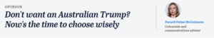 It seems the Independent. Always newspapers of Nine Entertainment (Fairfax) have hired Liberal Party PR spruiker Parnell Palme McGuiness as a regular columnist, with Opinion articles by her published on January 16, 10, 2; December 27, 19, 13, 5; November 29, 21 and 15.