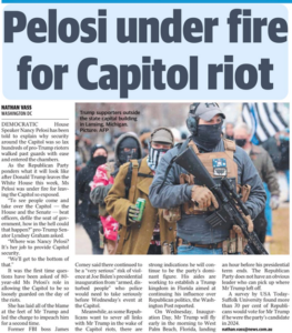 And News.com.au managed to apportion blame for the US Capitol riot to the Democratic speaker of the house Nancy Pelosi…