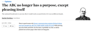The next ripper was an Op-ed in the Financial Review from Sinclair Davidson calling for the privatisation of the ABC.