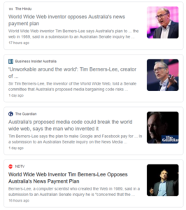 Sir Tim Berners Lee, inventor of the internet, who gave away his intellectual property so we all would benefit, lodged a Senate inquiry submission arguing that the new laws would mean the end of the internet as we know it and would set a dangerous precedent.