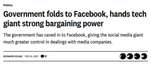 Still, when Facebook restored news – after the government gave Facebook most of what it wanted – only Michael Pascoe at The New Daily and Bernard Keane at Crikey called it what it was: a win for Facebook.