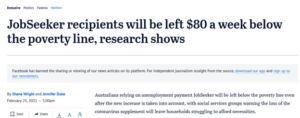 Despite widespread outrage among welfare groups and economists, the media nearly tripped over themselves in the attempt to sell the nation on the idea that a rise in JobSeeker from 30% below the poverty line to merely 25% below the poverty line was “balanced”.