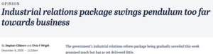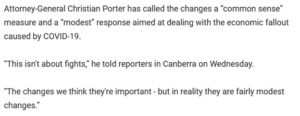When tabling the omnibus Industrial Relations bill in early December, the Industrial Relations Minister Christian Porter described the changes as “modest”.