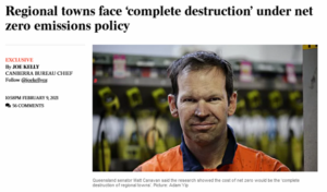 No explanation of the new opportunities that will be created in regional areas during a transition to a low-emissions economy.
