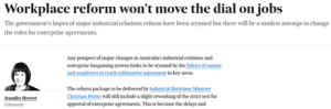 “Modest industrial relations reform” - so said Jennifer Hewitt, columnist at the Australian Financial Review, on ABC Insiders on Sunday.