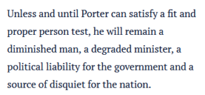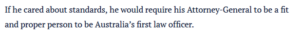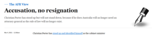 The Australian Financial Review parroted Porter’s idea that the rule of law would no longer exist if he should step down – a straw man argument, as the loudest calls have been made for the purposes of establishing an inquiry – as well as unchallengingly repeating his claim that the allegations had not been put to him by journalists.