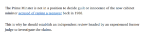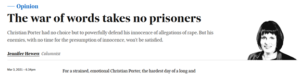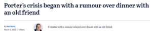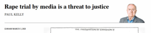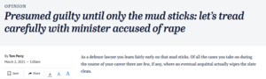 Rob Harris at The Sydney Morning Herald seemed particularly callous, equating the complainant’s “ruined” life with Porter’s. One person was allegedly raped and died by suicide 30 years later. The alleged perpetrator will face no criminal investigation, but may have to stand down and move into a cushy consultancy job. Hardly apples and apples.