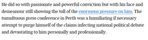 Chris Kenny at Sky News went so far as to compare the coverage to the Salem Witch trials, but Porter’s press conference didn’t merit an appearance on any of Sky’s social media.