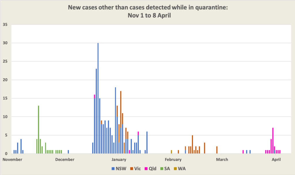 Of most immediate concern is vaccination of frontline quarantine workers – the most likely sources of introduction of possibly uncontrollable new strains of Covid-19 into an unvaccinated population. On the ABC’s 730 Report on Tuesday night Health Department Secretary Brendan Murphy had the unenviable task of defending the government’s botched rollout. All he could say was “most of the hotel and quarantine staff have already been vaccinated”. Surely vaccinating that relatively small number (70 000 according to the Commonwealth’s disaggregation of the 678 000 people in Phase 1a) should have been the first priority. The possibility that the AstraZeneca vaccine may not be suitable for younger people has been known for some weeks. Surely it would been prudent to reserve limited supplies of Pfizer for those exposed to travellers, rather than allocating them to aged-care homes as the Commonwealth has done.