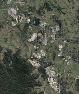Turnbull suggests we look at Google Maps to get an idea of the effect of coal mining in the Upper Hunter. The screenshot covers an area of approximately 35 X 40 km between Singleton and Muswellbrook.