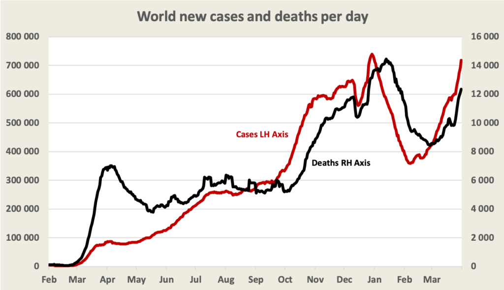 Earlier this year the pandemic seemed to be easing, but in the last two months it has re-surged, and its world-wide incidence will probably exceed the January record of 740 000 daily cases.