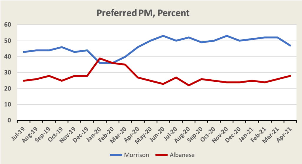 There is a set of questions about the withdrawal of “Jobkeeper” payments. As is the case so often with questions about fiscal matters there are some inconsistencies – more people think it should be extended rather than terminated, but a similar proportion believe that the scheme is far too expensive to be continued.