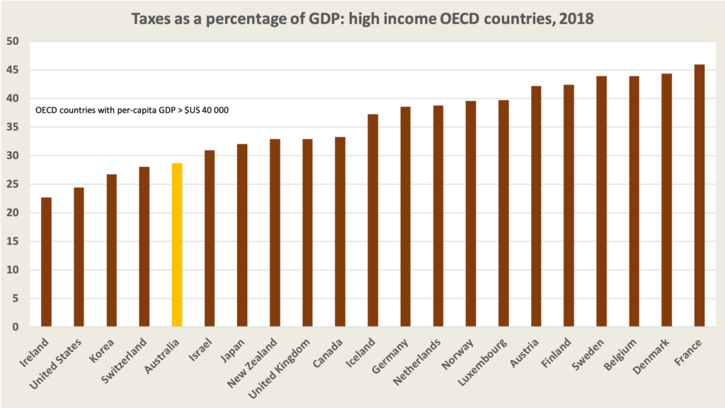 Among so-called “developed” high-income countries, Australia is already among the ranks of the lowest-taxed countries. If a country raises insufficient public revenue its public sector will be inadequately funded, and an inadequately-funded public sector leads to a path of slow economic decline as we fail to sustain investments in education and infrastructure, and as widening inequality tears apart the nation’s social fabric.