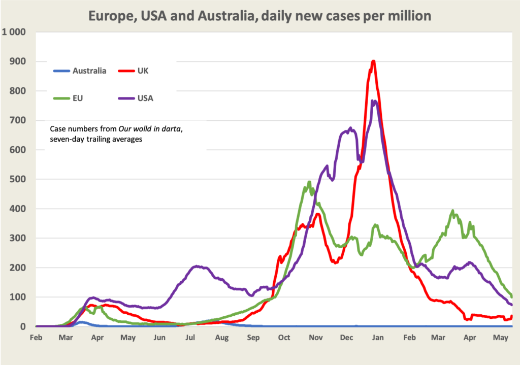 See our separate web page of hyperlinks to generally reliable information and analysis about Covid-19, including the ABC’s vaccine tracker. The Harvard Gazette has an article “Daily walks? Baking? Mindfulness? Which pandemic changes are keepers?” – maybe the people of Victoria will have enjoyed benefits denied to other Australians who have had shorter periods of lockdown.