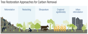 The simple graphic above illustrates where the USA could plant up to 60 billion trees by 2040. These trees could remove 540 million tons of CO2 per year, about 10% of the USA’s annual emissions. The largest opportunities are by reforesting historically forested land (21 billion trees), increasing the stocking of ‘understocked’ forests used for timber production (24 billion) and integrating trees into pastures (13 billion). Smaller increases can be achieved by planting trees on croplands, for instance between rows, around field edges and along streams (2 billion) and in cities (400 million). As well as carbon sequestration, there are many additional benefits of increasing the tree cover: for instance, improving soil fertility, reducing heat stress on livestock, reducing the ‘urban heat island’ effect, cleaning the air in cities, and improving living environments. Landforms, climates and farming practices are very different in the USA than in Australia but it would be interesting to see where trees could be planted and in what sorts of numbers here.