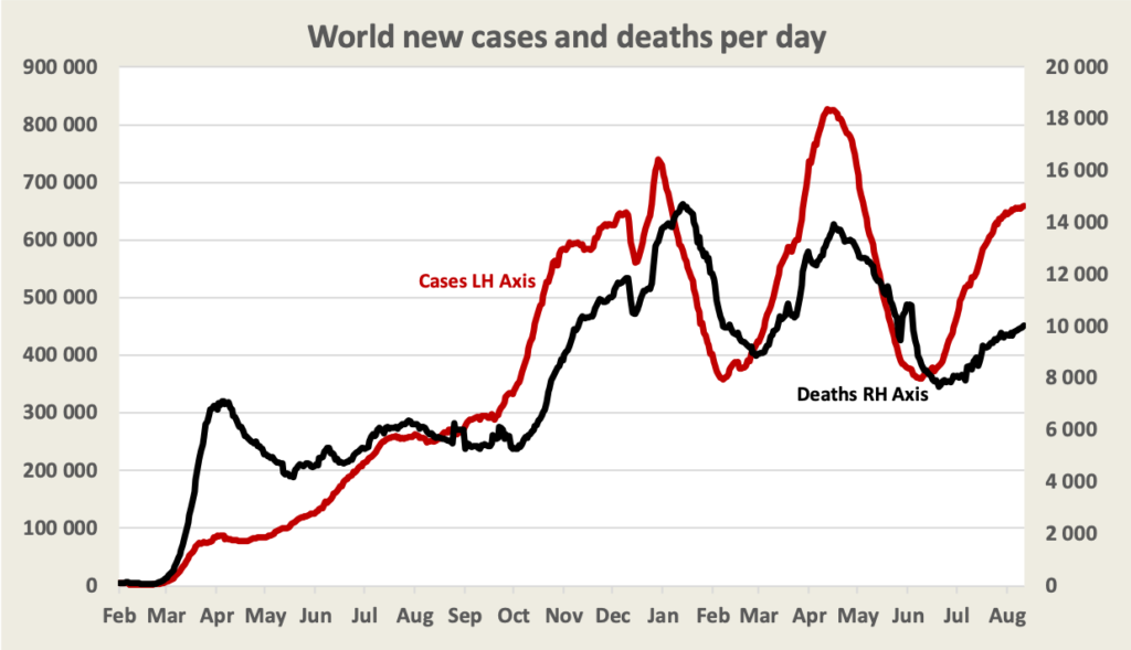Below is another week’s update on world cases and deaths. We have already commented on the limitations of case data, and the WHO data on deaths, gathered from national governments, is stretching our credulity. How is it that Africa, with 17 per cent of the world’s population (largely unvaccinated) accounted for only 7.5 per cent of deaths last week?