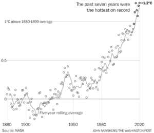 The recent IPCC scientific report painted a very grim picture of climate change – but, by the very nature of such reports that appear every few years and synthesise the results of many scientific studies, the findings were already a little dated by time of publication. Perhaps the economic downturn prompted by COVID in 2020 changed things for the better?? No such luck according to ‘State of the Climate in 2020’, the annual report of the USA’s National Oceanic and Atmospheric Administration (NOAA). On the contrary, planet Earth is in its worst shape ever: