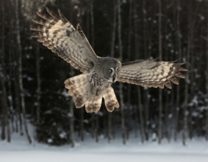 - The great grey owl that can fly silently and hear a mouse hidden under snow 30 metres away in the Great Northern Forests of North America and Russia decreed that deforestation should end right now. Better get used to it, Justin … you too, Boris;