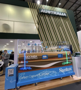There’s been a massive meeting of fossil fuel flunkies going on in Glasgow over the last two weeks: over 100 fossil fuel companies and 30 trade organisations represented by over 500 executives and lobbyists. This hasn’t been in parallel to the COP meeting, it’s been inside it. If Fossilfuel were a country (flag consisting of dead bodies on a black background; motto “Profit before People”), it would have been the largest delegation at the COP meeting. Twenty-seven real countries even have registered fossil fuel lobbyists in their official delegations. And of the 35 countries that had stands in the conference centre to promote their green credentials only two mentioned the need to cut fossil fuel production. And these two were hardly displaying exemplary behaviour. Denmark’s stand did not mention their role as the largest oil producer in the EU and South Africa’s was sponsored by three coal giants. The photo below shows Australia’s stall promoting Santos’s carbon capture and storage scheme.