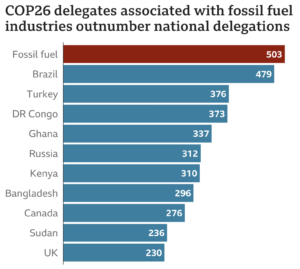 The list of countries with the largest official delegations in Glasgow is remarkable in itself. Nine countries have more delegates than the host nation. Perhaps they didn’t research Glasgow’s November weather before booking their flights. You’d need to know the CVs of the 100 or so Australian delegates to know if any of them has strong links to the fossil fuel industry — well, we do know about Scotty and Angus Taylor of course.
