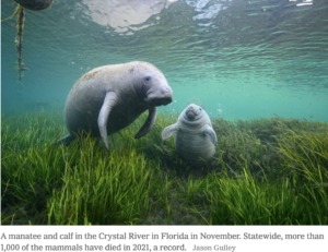 Australia continues to behave selfishly and irresponsibly, increasing fossil fuel production and having no credible plans to transition to a zero carbon society. Protecting the world’s immense natural reservoirs of carbon is almost as important as leaving fossil fuels in the ground. Manatees join the list of marine mammals threatened by human activities.