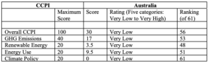 Australia’s ranking on the Climate Change Performance Index (CCPI) received some publicity when the latest results were released in November. Not surprising really as we ranked 56th of the 60 nations plus the EU included. Collectively these nations are responsible for 92 per cent of global greenhouse emissions. Rankings are tricky beasts, however. You can be numero uno and still rubbish, and you can be bottom of the pile and still be achieving a respectable standard. So let’s look at Australia’s scores on the CCPI and its four constituent elements, not just our ranking.