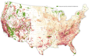 The protected areas currently occupy 13 per cent of the USA. The Biden administration has a goal to reach 30 per cent by 2030 in line with the global 30x30 proposal for land and water conservation. Just ensuring that 30 per cent of the country is protected is not much use though if many of the protected areas contain few if any threatened species or little biodiversity.