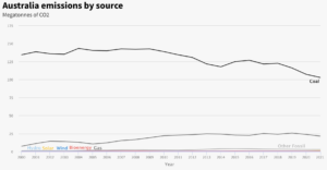 The consequence for Australia’s electricity-related CO2 emissions (the lowest hanging fruit for emissions reduction) is that our emissions from fossil fuels have decreased only modestly from 143 Megatonnes of CO2 in 2000 to 127 in 2021, having peaked at 164 in 2009. The annual rate of decrease since 2009 is 3 per cent, although in fairness it has been slightly more rapid in recent years.