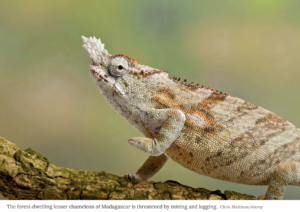Madagascar is home to about a half of the world’s 200 species of chameleons. Unfortunately, the island’s lesser chameleon is one of the 21 per cent of reptiles threatened with extinction.