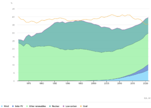 Of course, there are enormous differences across countries. Denmark and Uruguay lead the pack at around 50 per cent, albeit with modest requirements, while some European countries and Australia are doing pretty well at 20 per cent or more. Japan, USA and China, all biggish producers of wind and solar electricity, are each hovering around 10 per cent. The original of the figure below is an animated graphic showing the various nations’ progress from 2000 to 2021.