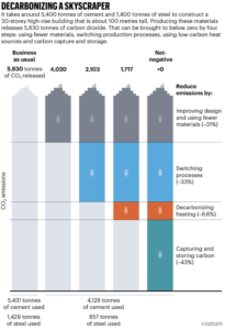 - Use less steel and cement: changing building codes and educating architects and engineers to reduce over-engineering can reduce demand by 25 per cent. Use alternative materials with smaller carbon footprints.