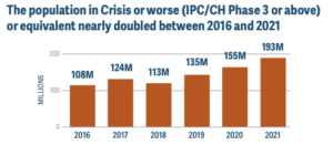 - In 2021, 193 million people were in Crisis or worse and in urgent need of assistance – an 80% increase since 2016.