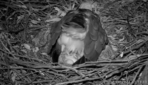 You won’t get many chances to watch a sea eagle laying an egg but in this recording you can see her laying two, carefully watched by the expectant father. The eggs were laid about 3 days apart two weeks ago. To slow down the development of the first egg, the parents leave it uncovered for much of the time until the second egg is laid. You can follow the progress of the parents and eggs, which won’t hatch for another10 weeks or so, on the live streamed sea-eagle cam.