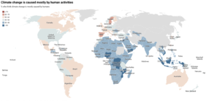 In only about fifteen countries did more than half think that climate change is ‘mostly’ caused by humans – Australia 50%.