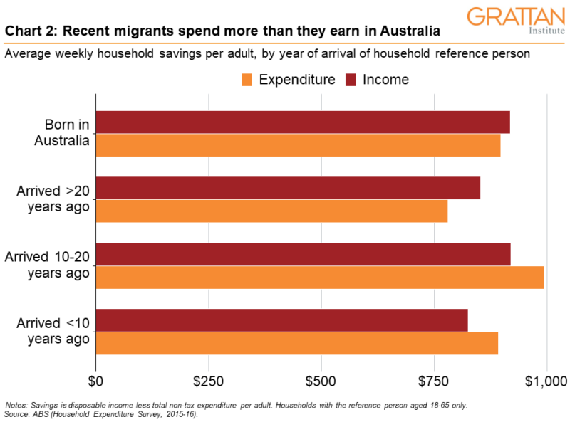 Even if the government gives priority to applicants from overseas (as the new Minister for Home Affairs, Clare O’Neil, has already flagged), more permanent migrants still won’t fix the worker shortage because when there are more migrants there are also more jobs. Recent migrants spend more in Australia than they earn (see Chart 2) – which adds to the demand for jobs.