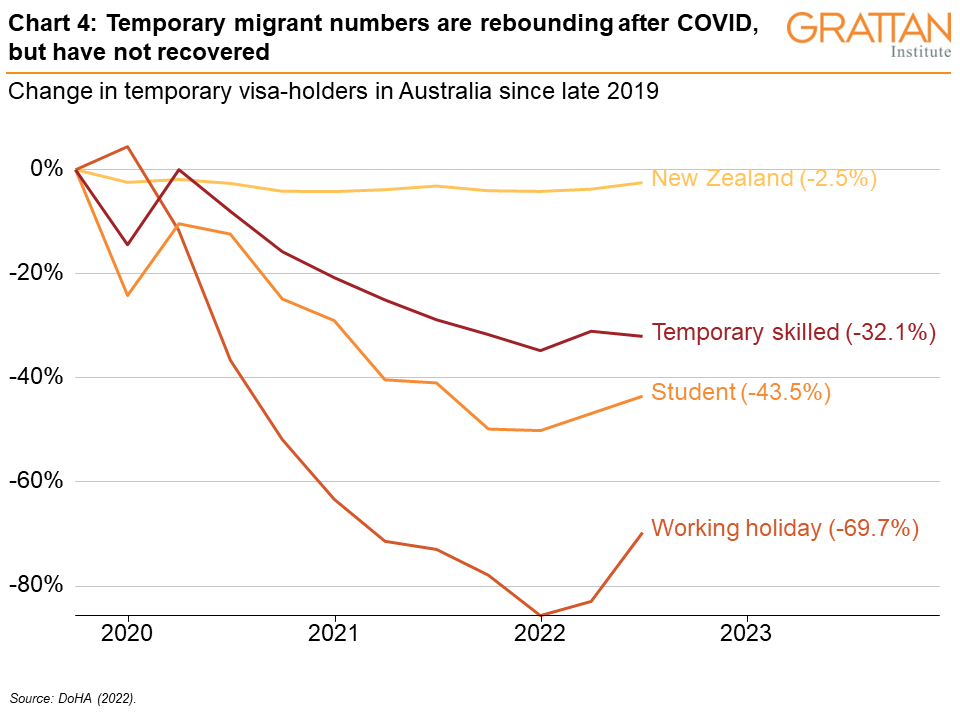 But even a targeted program won’t make up for the fact that most of the migrants missing from the Australian labour market don’t come here on permanent visas.