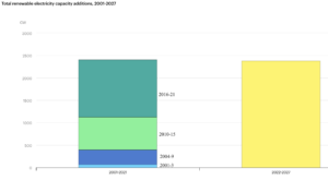 As much renewable energy will be installed in the six years from 2022-2027 as was installed in the 21 years from 2001-2021.