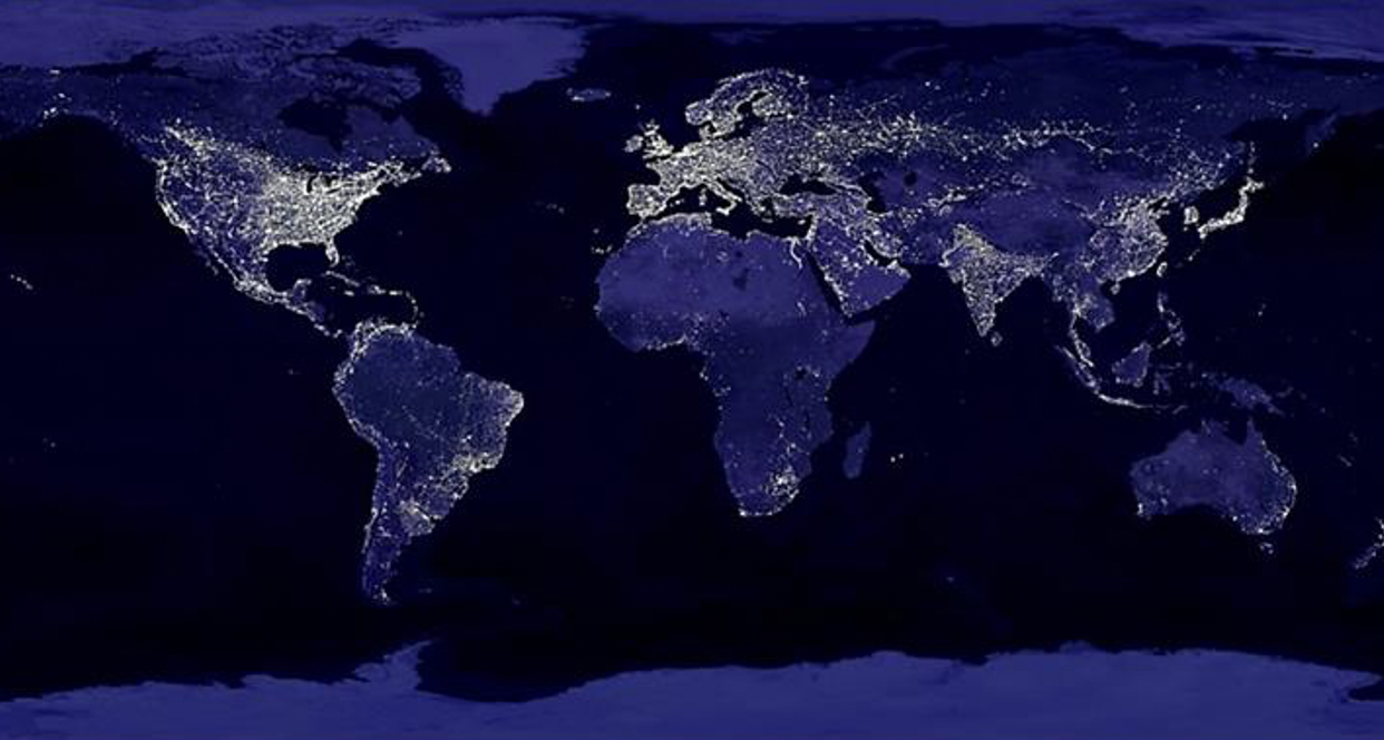 Figure 1. A combined night lights image of Earth signifying global civilisation. NASA