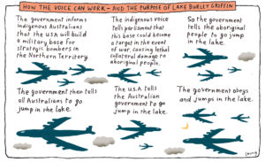 Michael Leunig perfectly captures the challenges of current issues in Australian politics and the nation’s loss of sovereignty to the US.