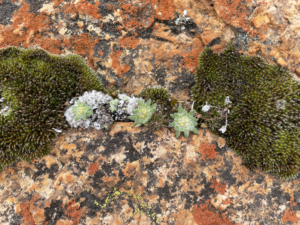 I’ve no idea whatsoever about the identity of the various species of mosses, succulents and lichen growing on the granite outcrop in the photo below. I took it on the Charles Darwin Reserve in Western Australia a couple of weeks ago. I simply thought I’d finish this week with a pretty picture.