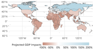 While the GDPs of USA, much of Europe, Australia and New Zealand have suffered as a result of climate change, the largest losses in economic development have been experienced by tropical and sub-tropical countries that were the poorest to begin with, especially countries in Africa.
