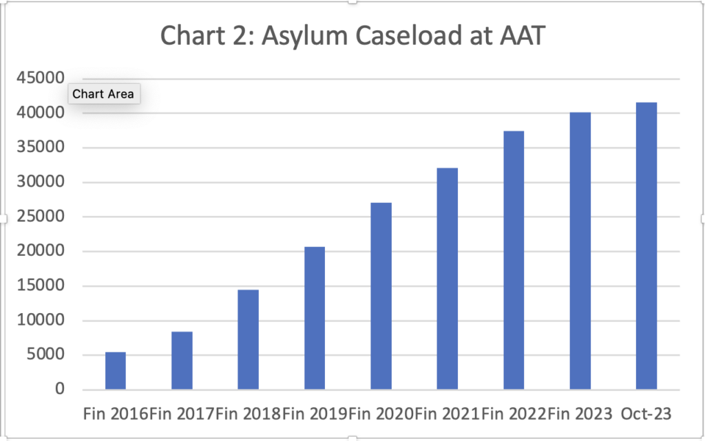 These primary applications are now steadily moving into the AAT backlog. For many Pacific Island nations, there were zero asylum applications in the AAT backlog just a few years ago. This is now the fastest growing cohort in the AAT asylum backlog (see Chart 5).