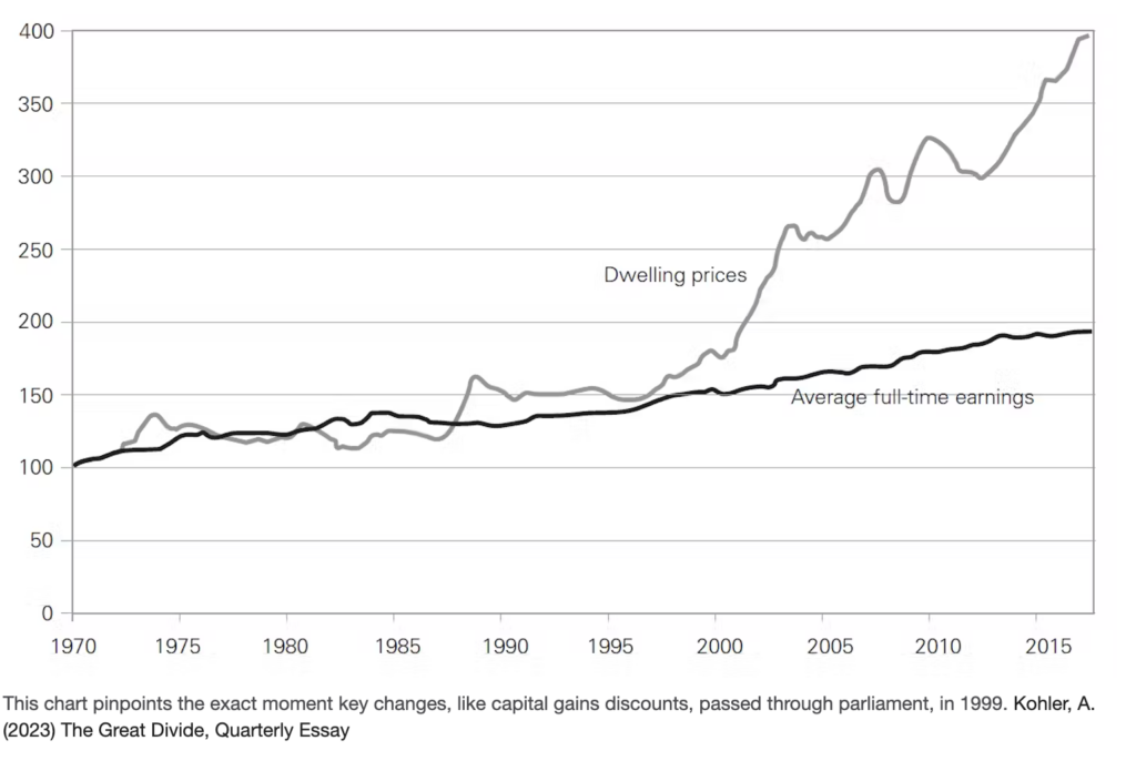 While the conditions may have been set long ago, the key changes that culminated in this affordability crisis began around 2000. Discounts on capital gains, introduced by the Howard government in 1999, lit the fuse on this housing bonfire.