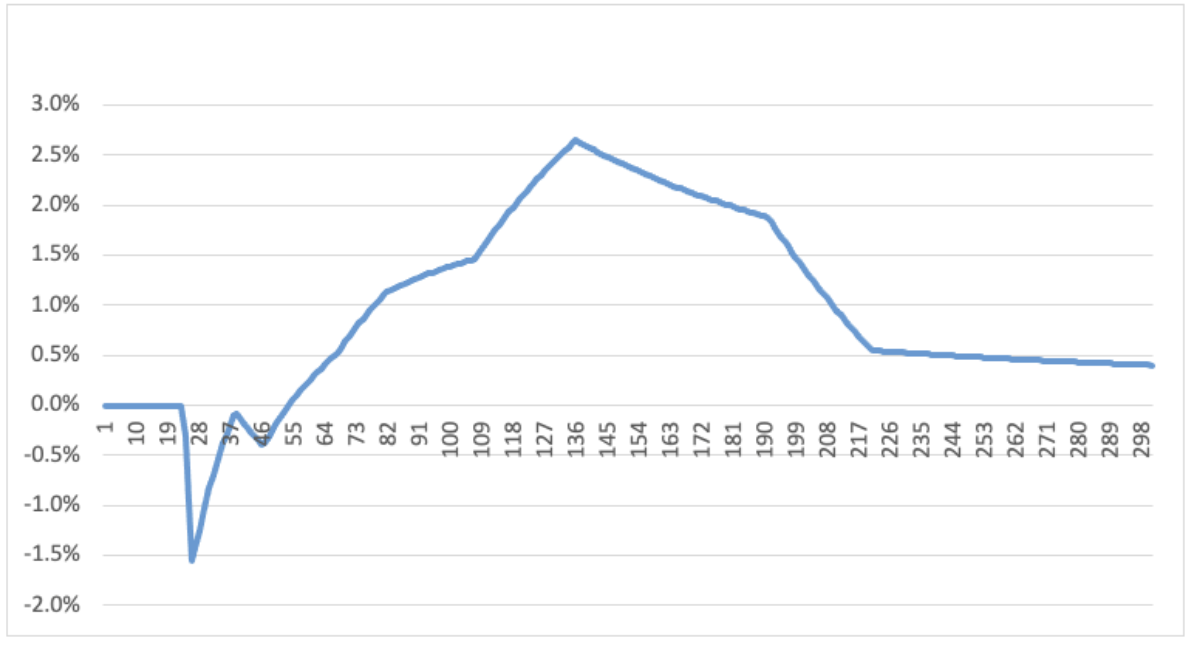 Graph 2: Tax saved under Albanese scale compared to indexed 2017-18 scale as % of income